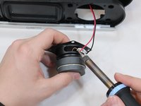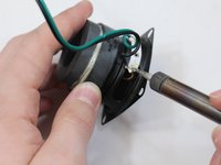 Remove green (left) and red (right) wired connection to speaker bulb using soldering station.