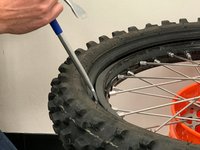 Insert the spoons on the side of the tire, with the bead still out, and begin working that side in the same as the other side.