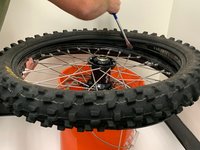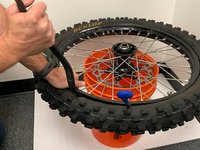 Remove the tire from the stand and bounce it a few times on the ground to be sure the bead is set.