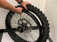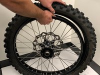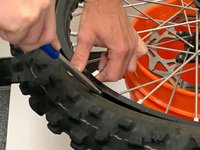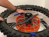 Once the tire is completely over the rim, flip the tire over and repeat Steps 5 and 6 to bring the tire over the rim on both sides.