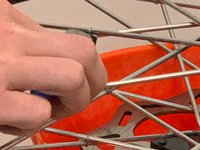 If necessary, use the utility knife to cut a small hole in the rim strip behind the spoke nipple.