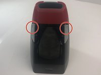 Press the two grey buttons on either side of the filter chamber inwards to release the chamber.