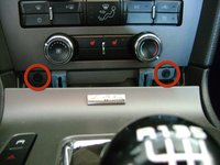 Locate the two bolts under the air conditioning controls at the bottom of the face plate.