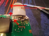 Remove the spring at this stage so you won't lose it. Using a tweezer may help if you have thicker fingers.
