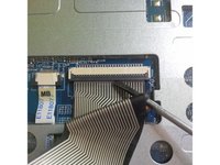 Use a plastic prybar to remove the LCD connector. Be careful not to break the cable or its plastic holder.