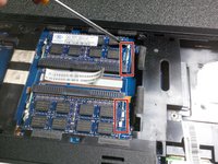 Carefully remove the ribbon cable connecting the two halves of the motherboard.