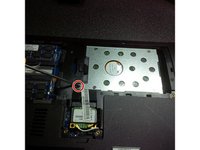 To remove the hard drive, undo the screw that holds it in place and carefully pull the HDD to the right.