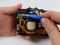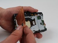 Disconnect the cable on the back of the camera to the left of the viewfinder by lifting it up vertically using a plastic opening tool.