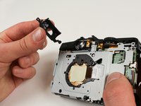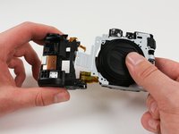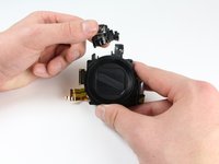 Grab the metal frame with the flash assembly that was removed from around the lens assembly.