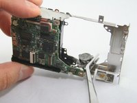 Use tweezers to remove the connector ribbon from the top-left corner above the LCD screen.