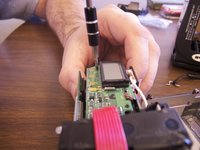 Cut white wire, red wire, and black wire connecting flash element to circuit board by unsoldering ends