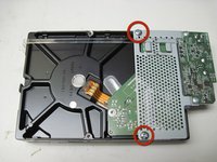 Remove hard drive from plastic case, flip over, and remove the two screws marked by red circles.