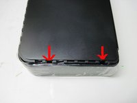 The 3 red arrows indicate the hidden tabs on the last side. Repeat the screwdriver technique from the last two steps.