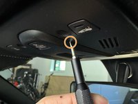 Use a #2 phillips head bit to remove 2 screws from each of the driver and passenger side sun visors. Be careful, the black finish can come off of the screw heads if you use too much force.