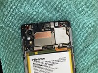 Remove the ribbon cable that connects both boards, on top of the battery, after disconnecting it from both boards with a spudger or mediator.