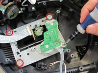 With a Phillips #2 screwdriver, remove two 5mm screws from the black plastic frame which previously held up the rectangular circuit board.