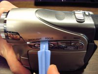Place the plastic opening tool into the seam between the top cover and the bottom cover of the camera.
