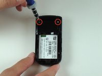 Remove the black, rubber screw caps towards the top of the back of the phone to reveal two additional screws.