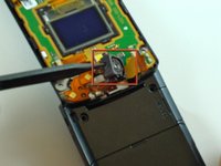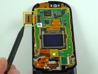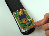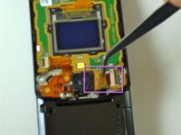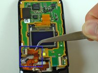 Remove the flexible circuit shown using tweezers (or use your fingers if you can manage a firm grip).