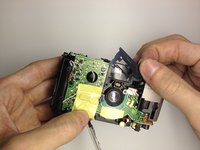 Remove the screw holding the film lever in place by using a Phillips #00 Precision Screwdriver.