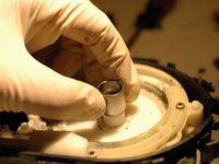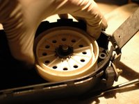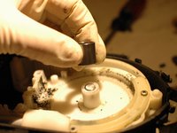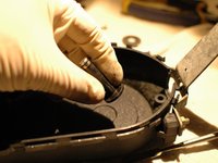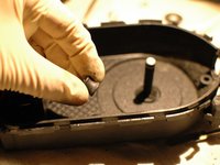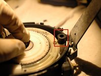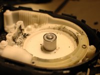 Lift the metal gear bushing up and off of the housing and set it aside.