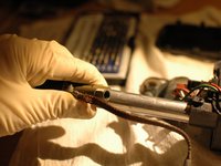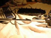Now you can remove the gear and cable housing. It seems to work best to rotate the housing up and in the direction of the antenna shaft opening before angling it up and pulling it out of the motor body.
