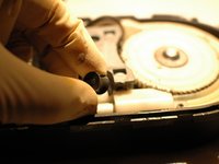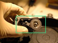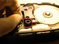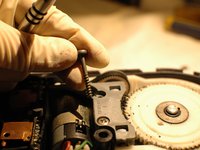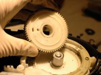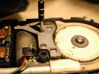 Use a metal spudger or flat blade screwdriver to remove the c-clip holding the gears to the bushing and shaft.