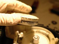 Make note of which gear is the upper gear, and of the alignment of the gears and the spring together.