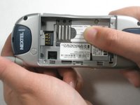 To remove the battery, press thumb against the bottom edge of the battery and push towards the top of the phone.