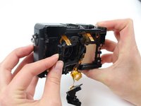 Pry off the back of the camera using a spudger starting from the top right side of the LCD screen.