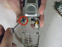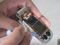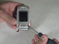 Put pressure on the spring with the screwdriver to unhinge phone.
