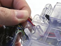 Before removing the plastic cover holding the motors we need to remove the PCB cables inserted in it.