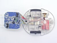 Now that the cover is off, we have access to the the PCB but before removing it the LEDs for the eyes are glued on the chassis.