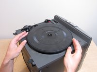 Using the appropriate tools (needle-nose pliers, tweezers, screwdriver, etc.), remove the snap ring from the center of the turntable. The snap-ring is the small metal ring around the axel of the turntable.