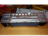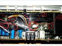 To loosen the receiver board, remove 3 screws [1]. By loosening another screw [2] the projector unit can already be loosened.