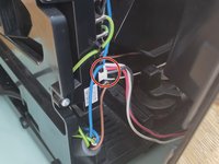Disconnect the plug with the red, white, and black cables from the circuit board. It has a small hook that you have to press in.
