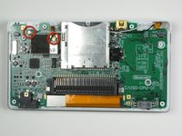 Avoid touching the L and R shoulder buttons, because they easily detach and are difficult to reassemble. Keep the bottom case flat against your workbench to help hold the shoulder buttons in place.