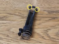 On the picture in the red circle you can see a hook, the actual driver. This position is not the basic position, it is only photographed so that you can see the hook. This hook must be in the approximate position of the green line.