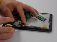 Using the flat end of a spudger or tweezers, remove the three cables connected to the motherboard.