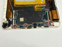 Using a J0 phillips head bit unscrew the three 1 mm screws from the motherboard as shown. Remove all three and place them aside.