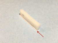 Install the printed spacer between the track and the wood. Make sure the small lip on the spacer is on the flat outside edge of the track (arrow). Reinstall the drawer and check functionality.