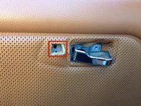 The hole should allow the upper bracket of the armrest to go inside the panel and rest against the bracket in the door.