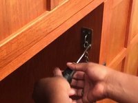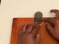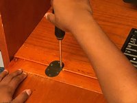Use the Phillips #2 screwdriver to turn the three #5 wood screws (15mm) and tighten the hemispherical plates along the length of the drop-front panel.