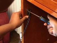 Reading this guide informs an audience how to repair a broken drop-front panel to restore the completeness and functionality of the panel and the overall desk. This repair requires lifting the panel and having another person assist in certain parts of the repair.