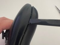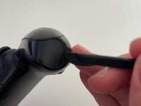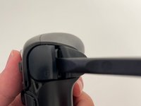 Insert an opening pick underneath the middle trim at the right bottom of the controller and pry it up to release the clips that secure it.