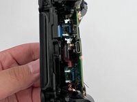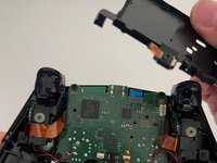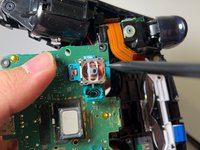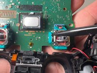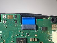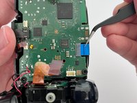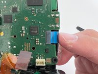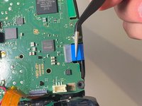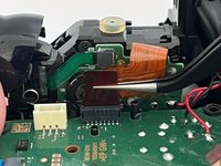 Use a pair of tweezers to disconnect the left trigger ribbon cable from the motherboard.