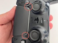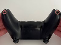 Use a Phillips screwdriver to remove the two 6.4 mm screws behind the L1 and R1 buttons, as well as the two 6.4 mm screws that secure the bottom corners of the lower case.