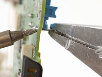 Once the solder is molten, use pliers to grab and pull the frame anchor out of its through-hole.