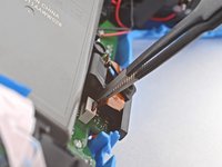 Use a pair of blunt-nose tweezers or your fingers to grip the upper microphone cable by its pull tab and disconnect it from the motherboard.