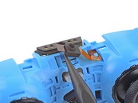Insert an opening pick underneath the middle trim at the bottom-right corner of the controller to release the clips securing it to the case.
